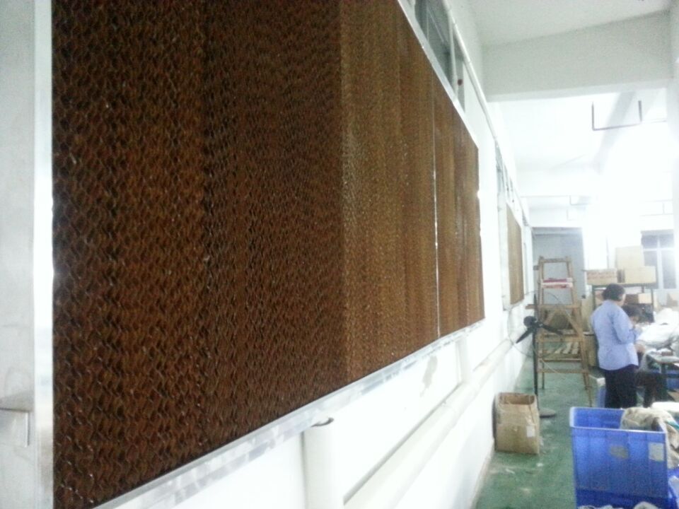 東莞水簾工廠-福泰水簾降溫公司 降溫水簾紙分三種型號。5090 6090 7090 前面兩種是環(huán)保空調(diào)專用。而7090是濕簾墻專用的。厚度一 般為10公分與15公分厚。也可以訂做更厚的。這兩種是常用規(guī)格了。5090、6090水簾是專用在蒸發(fā)環(huán)保空調(diào)里面的,5090的濕簾紙降溫效果比較明顯。價格也相對貴些。 東莞水簾工廠-福泰水簾降溫公司 負(fù)壓濕水簾風(fēng)機降溫也是很多客戶選擇的水簾墻適用環(huán)境及效果 負(fù)壓風(fēng)機通過自動控制系統(tǒng)實現(xiàn)風(fēng)機百葉的自動開啟和關(guān)閉達(dá)到防塵、防水、美觀的效果。噪音低、風(fēng)量大、耗電少、降溫效果明顯;既可吹風(fēng)、也可抽風(fēng),質(zhì)量保證,是廠房等降溫通風(fēng)的比較合適選擇。 福泰”降溫濕簾”降溫是通過蒸發(fā)降溫的一種經(jīng)濟的降溫方式。干熱空氣通過水簾進(jìn)入室內(nèi),由于水簾內(nèi)孔壁均勻布滿水膜,這樣室外新鮮空氣穿過水簾時,水簾上的水會吸收空氣中的熱量并產(chǎn)生蒸發(fā)現(xiàn)象,使新鮮空氣溫度下降,濕度增加,完成降溫過程,從而使廠房里的空氣變得涼爽、濕潤 。
