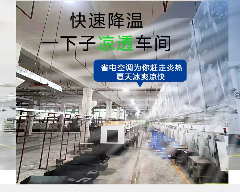 環(huán)??照{(diào)降溫設(shè)計(jì)單臺(tái)覆蓋100平方米的面積,降溫1個(gè)小時(shí)只需要1度電,1分鐘就能夠降低4-10度。而且還可以根據(jù)廠房的實(shí)際情況去設(shè)計(jì)不同的車間降溫方案。