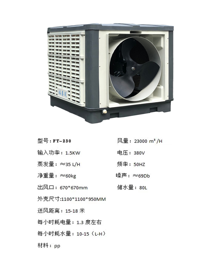 冷風(fēng)機(jī)通風(fēng)透氣:在整個(gè)系統(tǒng)的相互配合下,負(fù)壓風(fēng)機(jī)利用大風(fēng)量特點(diǎn),迅速有效排出室內(nèi)人員、機(jī)器產(chǎn)生的熱氣、廢氣、異味,2、避免了熱氣、廢氣長(zhǎng)時(shí)間停留在室內(nèi)對(duì)人體的刺激。整個(gè)室內(nèi)空氣快可以在一分鐘內(nèi)更換一次,這是一般其它通風(fēng)降溫設(shè)備所無(wú)法達(dá)到的效果。