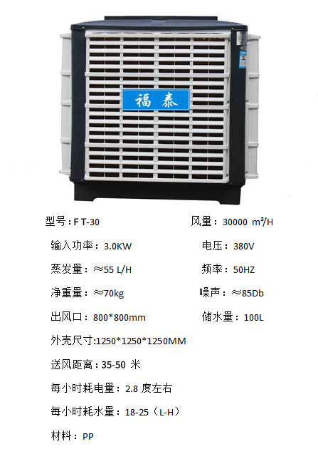 福泰環(huán)保空調(diào)性能穩(wěn)定在越炎熱的天氣下降溫的效果越好。適用于開敞式及半開敞式環(huán)境,能夠直接輸送自然風(fēng)及輸送降溫后的涼風(fēng)。室外新鮮空氣經(jīng)福泰蒸發(fā)式冷氣機(jī)過(guò)濾、降溫后向室內(nèi)源源不斷的大量輸送,將室內(nèi)帶有異味、粉塵和混濁悶熱的空氣排出室外,同時(shí)兼顧換氣降溫及增加空氣含氧量等多種效果。